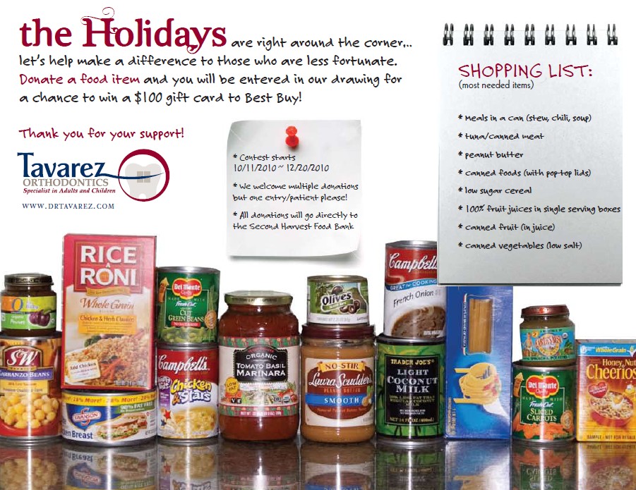 Happy middle of the week! Here's our latest contest - now through December 20th, donate a food item at our office, and you'll be entered in our drawing for a chance to win a $100 gift card to Best Buy! All donations will go directly to the Second Harvest Food Bank. THANKS FOR YOUR SUPPORT!